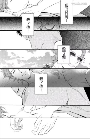 实际上这个时候受要杀攻还是不杀攻都已经跟四代目没关系了,原著里医院受的这场刺杀原因基本上只跟好基友有关,在受掐完攻的脖子从他床上下来后,他给了理由——“你杀了我的亲人”,而阻止他的动机也很明确:其一,如果说杀死受的亲人就必须死的话,那为什么受还活生生地站在这里?其二,受其实已经摸到他想要的答案的边缘了;其三,他意识到他开始对攻有好感了,再不下手恐怕以后就真的再也下不了手了(这就是为什么漫画会将这一幕处理得十分色情,当然相比起最后那一场车戏,还是有所节制的,至少他们都还是穿着衣服的)。